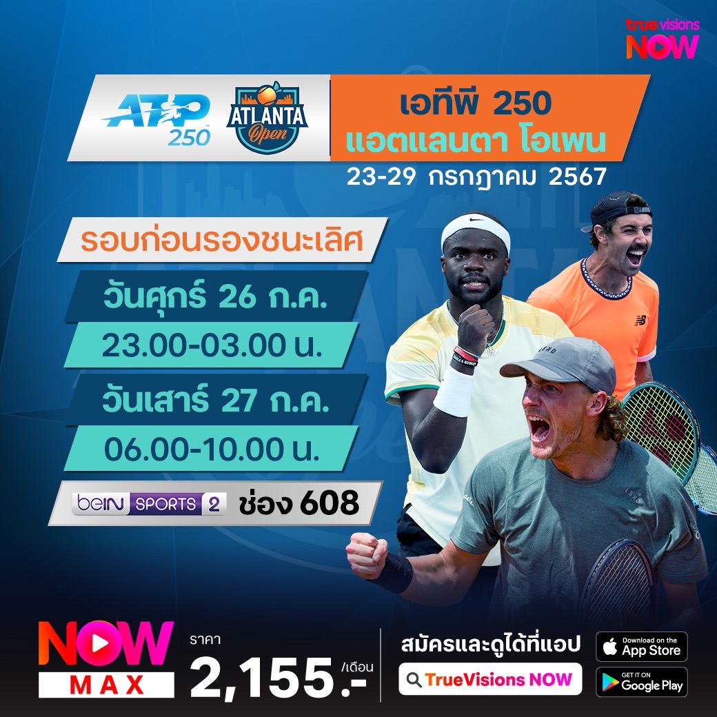 เทนนิสเอทีพี ทัวร์ รายการ แอตแลนต้า โอเพ่น ชิงเงินรางวัลรวมกว่า 756,020 เหรียญสหรัฐฯ เป็นรายการที่ให้นักกีฬาได้เตรียมตัวก่อนเข้าสู่ช่วงการแข่งขันฮาร์ทคอร์ทในทวีปอเมริกาเหนือ ใครจะคว้าแชมป์รายการนี้ไปครอง ชมและเชียร์ ทางทรูวิชั่นส์