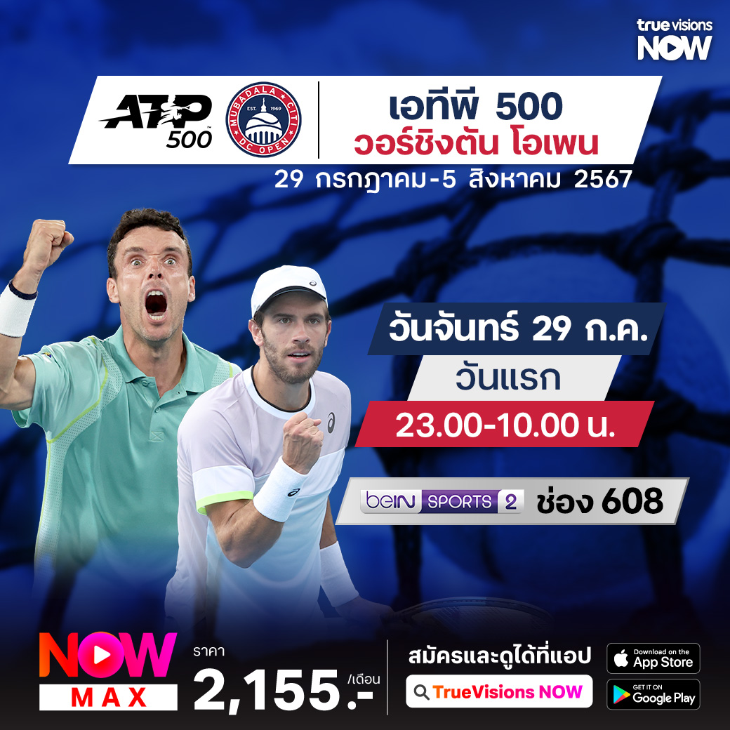 ติดตามชมการแข่งขันเทนนิสชาย รายการระดับ ATP 500 ถ่ายทอดสดจากกรุงวอชิงตัน ดีซี ประเทศสหรัฐอเมริกา รายการที่ให้นักกีฬาเตรียมตัวก่อนเข้าสู่การแข่งขันเทนนิสรายการใหญ่ประจำเดือนสิงหาคมบนทวีปอเมริกาเหนือ ร่วมลุ้นว่าใครจะคว้าแชมป์ไปครอง
