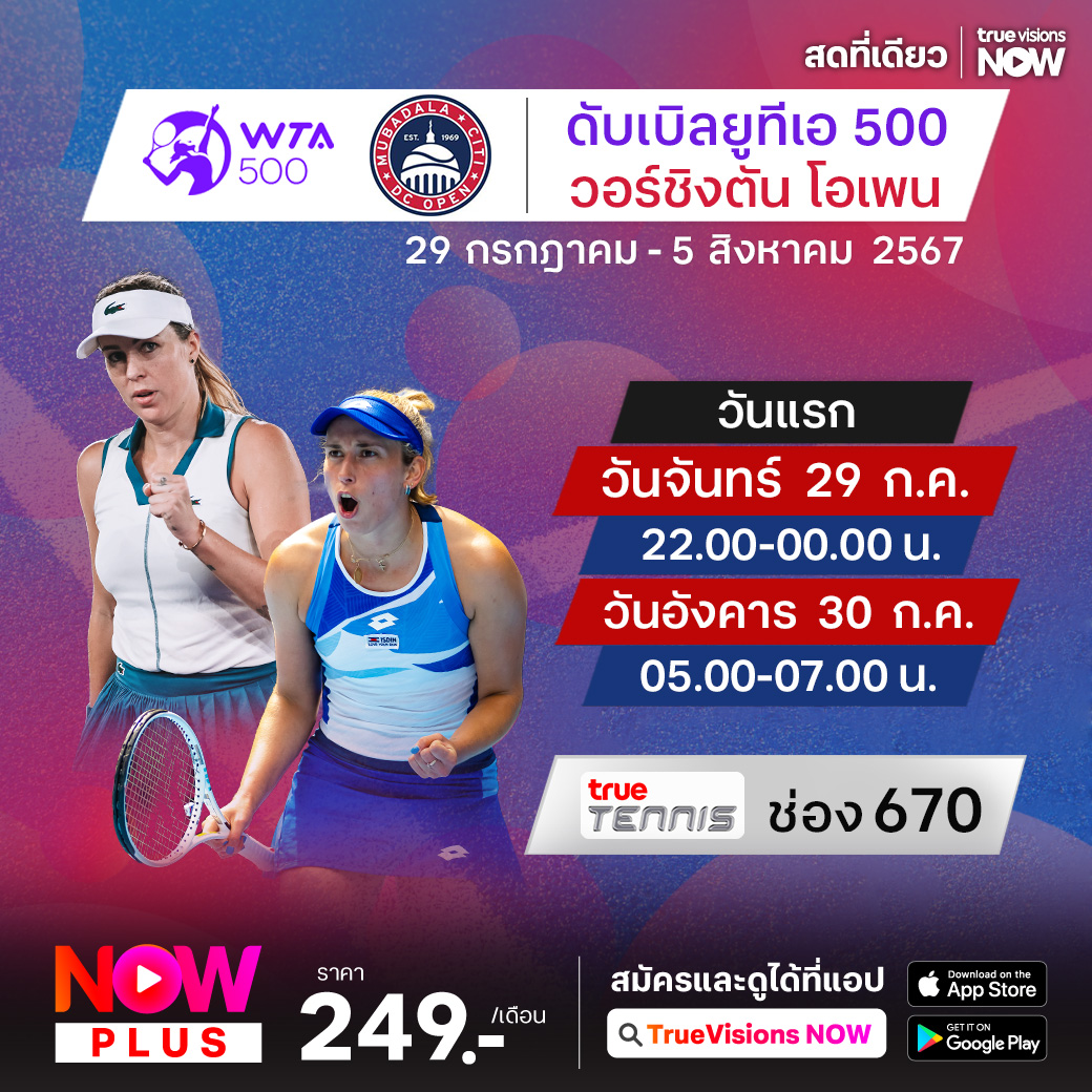ติดตามชมการแข่งขันเทนนิสหญิง รายการระดับ WTA 500 ถ่ายทอดสดจากกรุงวอชิงตัน ดีซี ประเทศสหรัฐอเมริกา รายการที่ให้นักกีฬาเตรียมตัวก่อนเข้าสู่การแข่งขันเทนนิสรายการใหญ่ประจำเดือนสิงหาคมบนทวีปอเมริกาเหนือ ร่วมลุ้นว่าใครจะคว้าแชมป์ไปครอง
