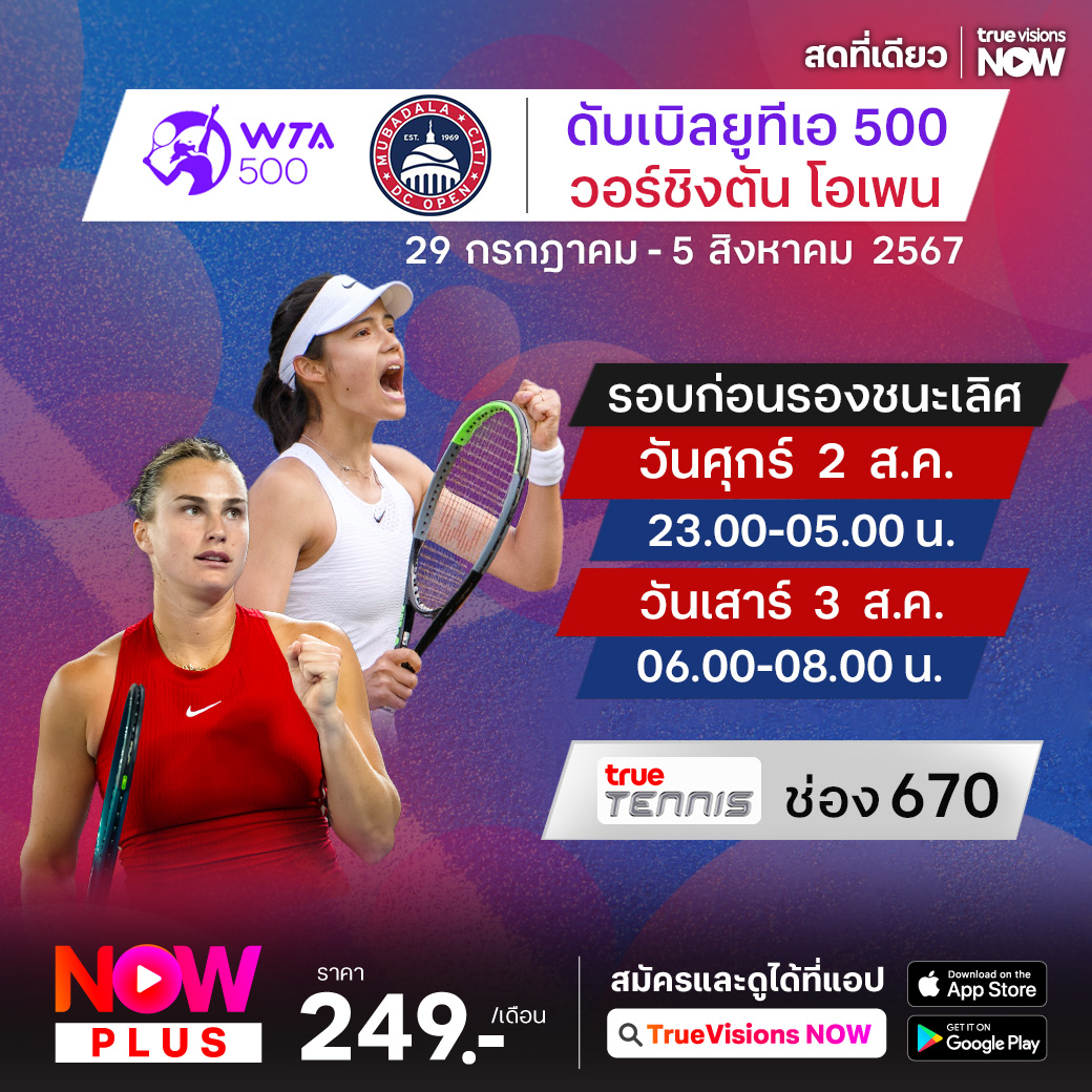 ติดตามชมการแข่งขันเทนนิสหญิง รายการระดับ WTA 500 ถ่ายทอดสดจากกรุงวอชิงตัน ดีซี ประเทศสหรัฐอเมริกา รายการที่ให้นักกีฬาเตรียมตัวก่อนเข้าสู่การแข่งขันเทนนิสรายการใหญ่ประจำเดือนสิงหาคมบนทวีปอเมริกาเหนือ ร่วมลุ้นว่าใครจะคว้าแชมป์ไปครอง