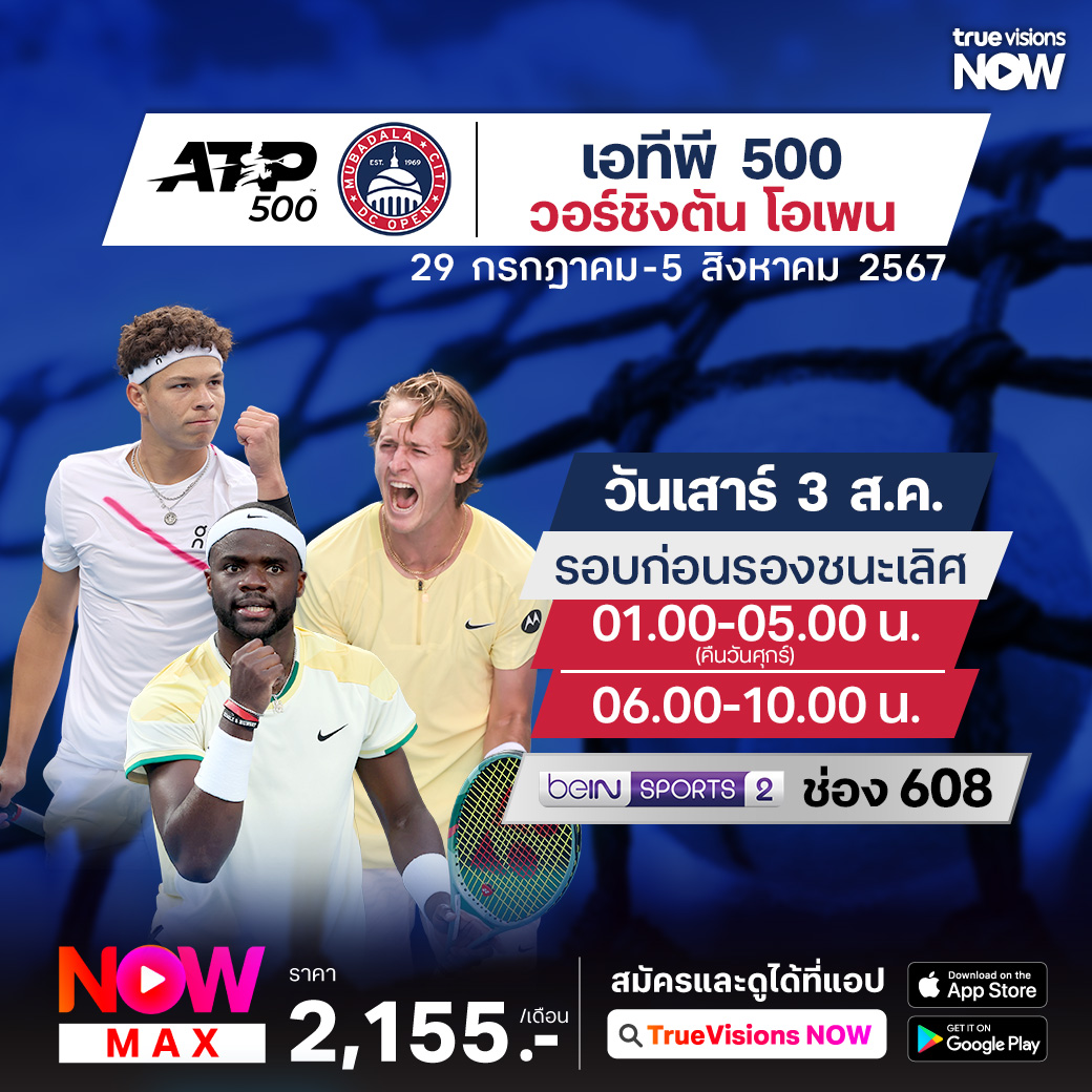 ติดตามชมการแข่งขันเทนนิสชาย รายการระดับ ATP 500 ถ่ายทอดสดจากกรุงวอชิงตัน ดีซี ประเทศสหรัฐอเมริกา รายการที่ให้นักกีฬาเตรียมตัวก่อนเข้าสู่การแข่งขันเทนนิสรายการใหญ่ประจำเดือนสิงหาคมบนทวีปอเมริกาเหนือ ร่วมลุ้นว่าใครจะคว้าแชมป์ไปครอง