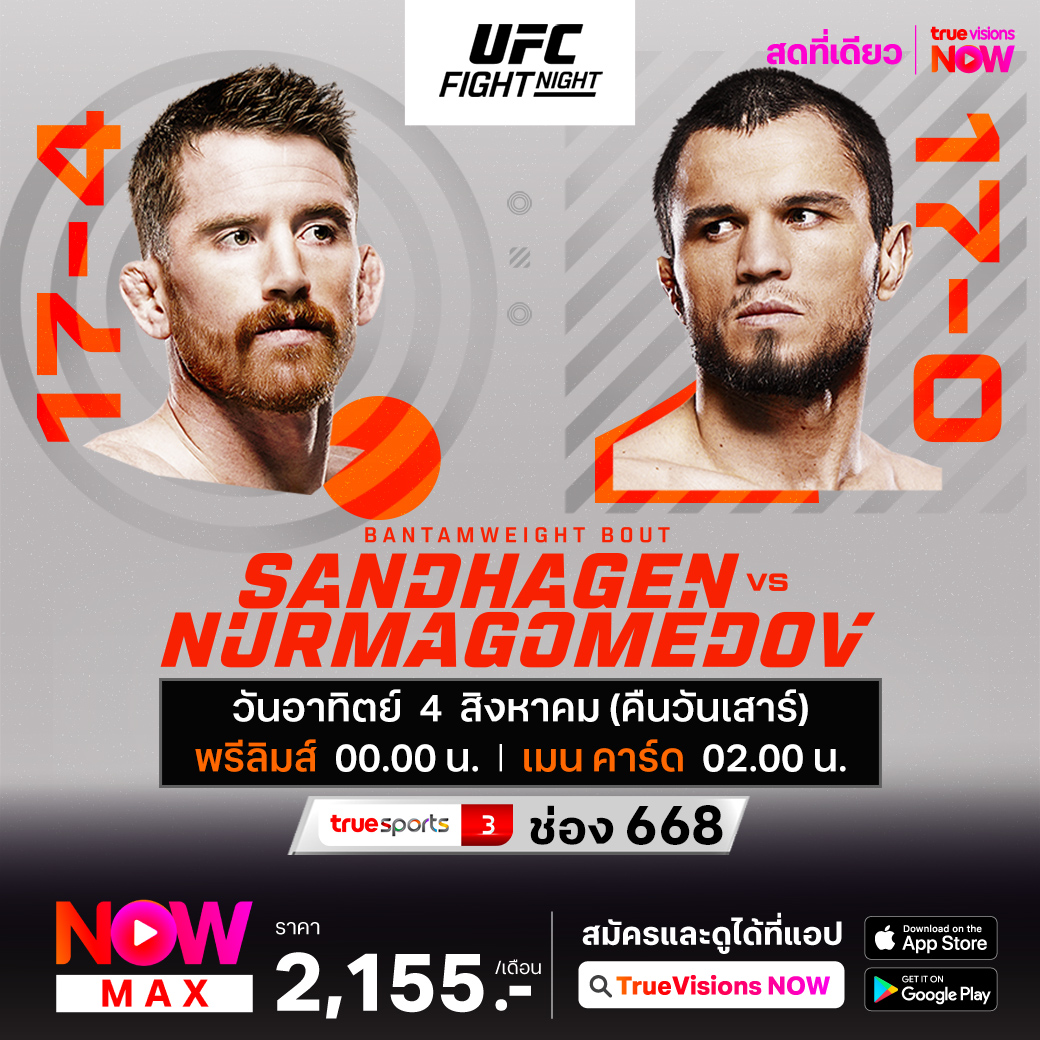 ยูเอฟซี ไฟต์ ไนท์ คู่เอกรุ่นแบนตั้มเวต คอรี่ แซนด์เฮเก้น รองแชมป์อันดับ 2 ชาวอเมริกัน ปะทะนักสู้จอมอันตรายจากรัสเซีย รองแชมป์อันดับ 10 อูมาร์ นอร์มาโกเมดอฟ ร่วมด้วยรุ่นมิดเดิ้ลเวต ชาร่า มาโกเมดอฟ จอมแกร่งจากรัสเซีย พบคู่ต่อสู้จากโปแลนด์ มิชาล โอเล็คเชจ์ชุค ชมสด เอ็กซ์คลูซีฟ ที่ ทรูวิชั่นส์