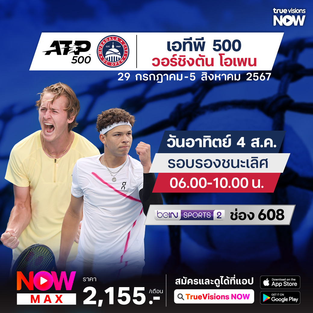 ติดตามชมการแข่งขันเทนนิสชาย รายการระดับ ATP 500 ถ่ายทอดสดจากกรุงวอชิงตัน ดีซี ประเทศสหรัฐอเมริกา รายการที่ให้นักกีฬาเตรียมตัวก่อนเข้าสู่การแข่งขันเทนนิสรายการใหญ่ประจำเดือนสิงหาคมบนทวีปอเมริกาเหนือ ร่วมลุ้นว่าใครจะคว้าแชมป์ไปครอง