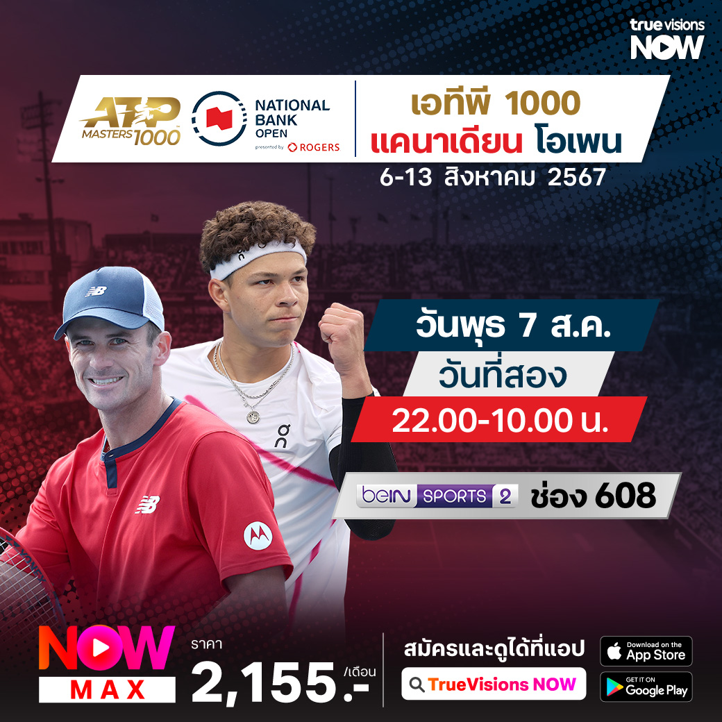 เทนนิสชาย เอทีพี ทัวร์ สัปดาห์นี้พบกับรายการใหญ่ระดับ เอทีพี 1000 ในรายการ เนชั่นแนล แบงค์ โอเพ่น ที่ประเทศแคนาดา นักหวดระดับโลกเข้าร่วมแข่งขันกันอย่างคับคั่ง ร่วมลุ้นว่าใครจะคว้าแชมป์ไปครอง ชมสด ที่ ทรูวิชั่นส์