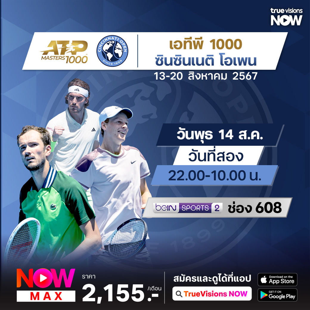 ติดตามชมการแข่งขันเทนนิสชาย เอทีพี ทัวร์ รายการระดับ ATP 1000 เตรียมความพร้อมก่อนเข้าสู่ศึกแกรนด์สแลมสุดท้ายของปี กับรายการ ซินซินเนติ โอเพ่น ถ่ายทอดสดจากเมืองซินซินเนติ รัฐโอไฮโอ ประเทศสหรัฐอเมริกา บรรดานักเทนนิสชื่อดังต่างเข้าร่วมการแข่งขันกันอย่างคับคั่ง ร่วมลุ้นกันว่าใครจะคว้าแชมป์รายการนี้ไปครอง ชมสด ครบทุกรอบที่ ทรูวิชั่นส์