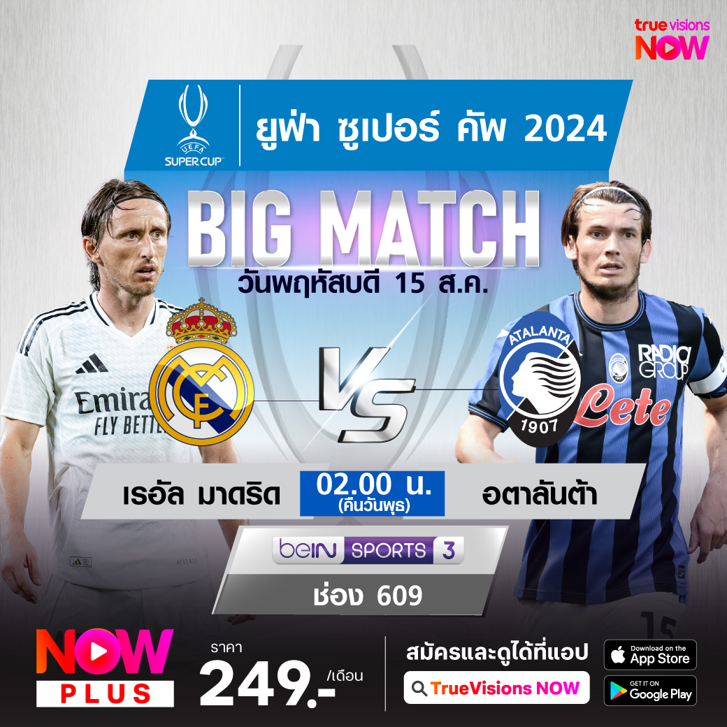วันนี้มีอะไรดูที่ ทรูวิชั่นส์ ประจำวันพุธที่ 14 สิงหาคม 67 ยังคงมีกีฬาที่น่าสนใจให้ได้ตามลุ้นตามเชียร์กันเหมือนเดิม โดยในส่วนของฟุตบอลนั้นมีศึก ยูฟ่า ซูเปอร์ คัพ 2024 ให้ได้ตามลุ้นตามเชียร์ ส่วนเทนนิสยังมี เอทีพี ทัวร์ และ ดับเบิ้ลยูทีเอ ทัวร์ รายการ ซินซินเนติ โอเพ่น ให้ได้ตามเชียร์กันต่อ งานนี้ ทรูวิชั่นส์ จัดเต็มให้ชมกันถึงบ้าน