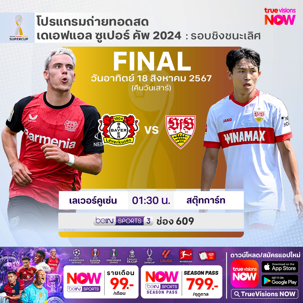 Leverkusen vs Stuttgart เวลา 01.30-03.30 ทางช่อง beIN 3 (609)