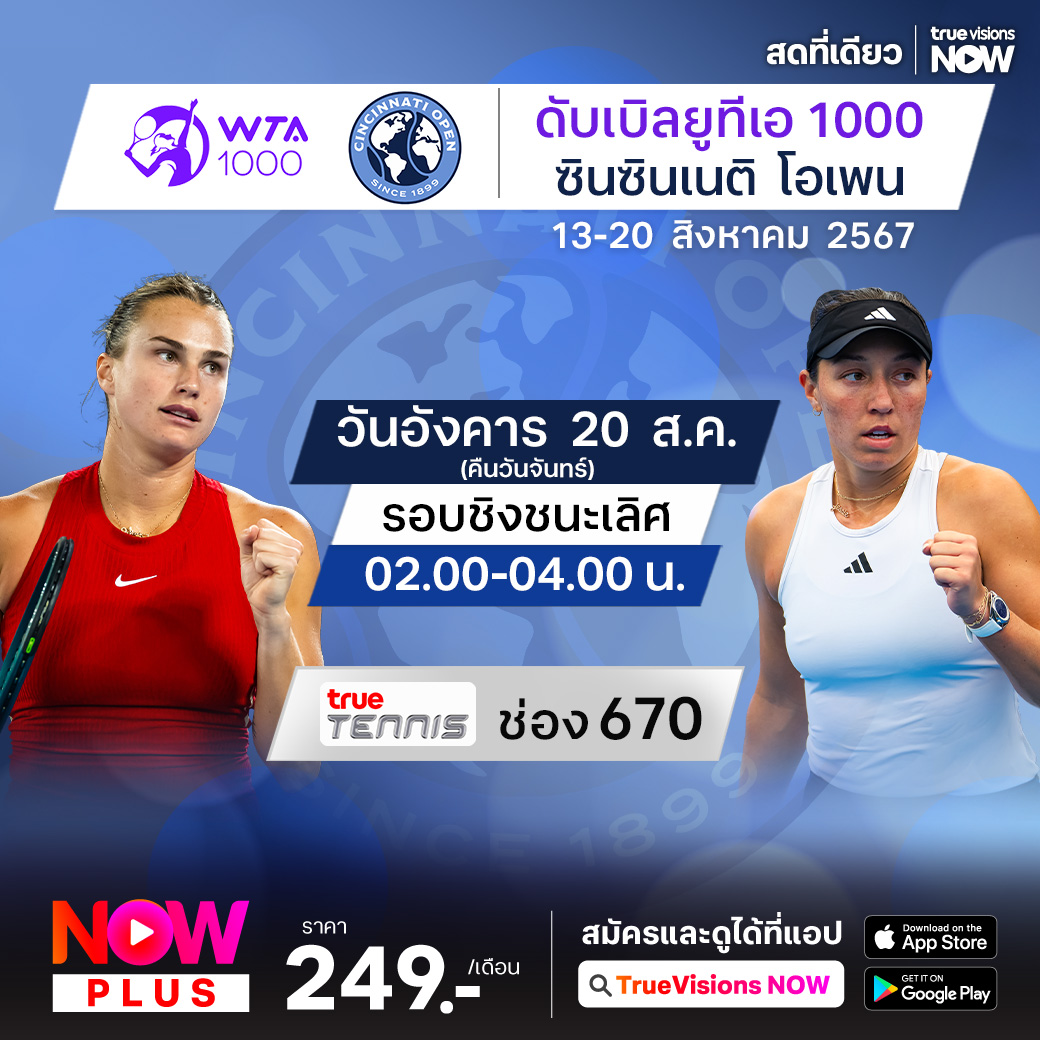 เทนนิสหญิง ดับเบิ้ลยูทีเอ ทัวร์ รายการระดับ WTA 1000 ซินซินเนติ โอเพ่น นักเทนนิสหญิงมือวางระดับโลกต่างเข้าร่วมชิงชัยกับคับคั่งเพื่อคว้าแชมป์รายการใหญ่ ก่อนจะเข้าสู่แกรนด์สแลมสุดท้ายของปี ถ่ายทอดสดจากเมืองซินซินเนติ รัฐโอไฮโอ ประเทศสหรัฐอเมริกา ร่วมลุ้นว่าใครจะคว้าแชมป์รายการนี้ไปครอง ชมสด ครบทุกรอบ ที่ ทรูวิชั่นส์