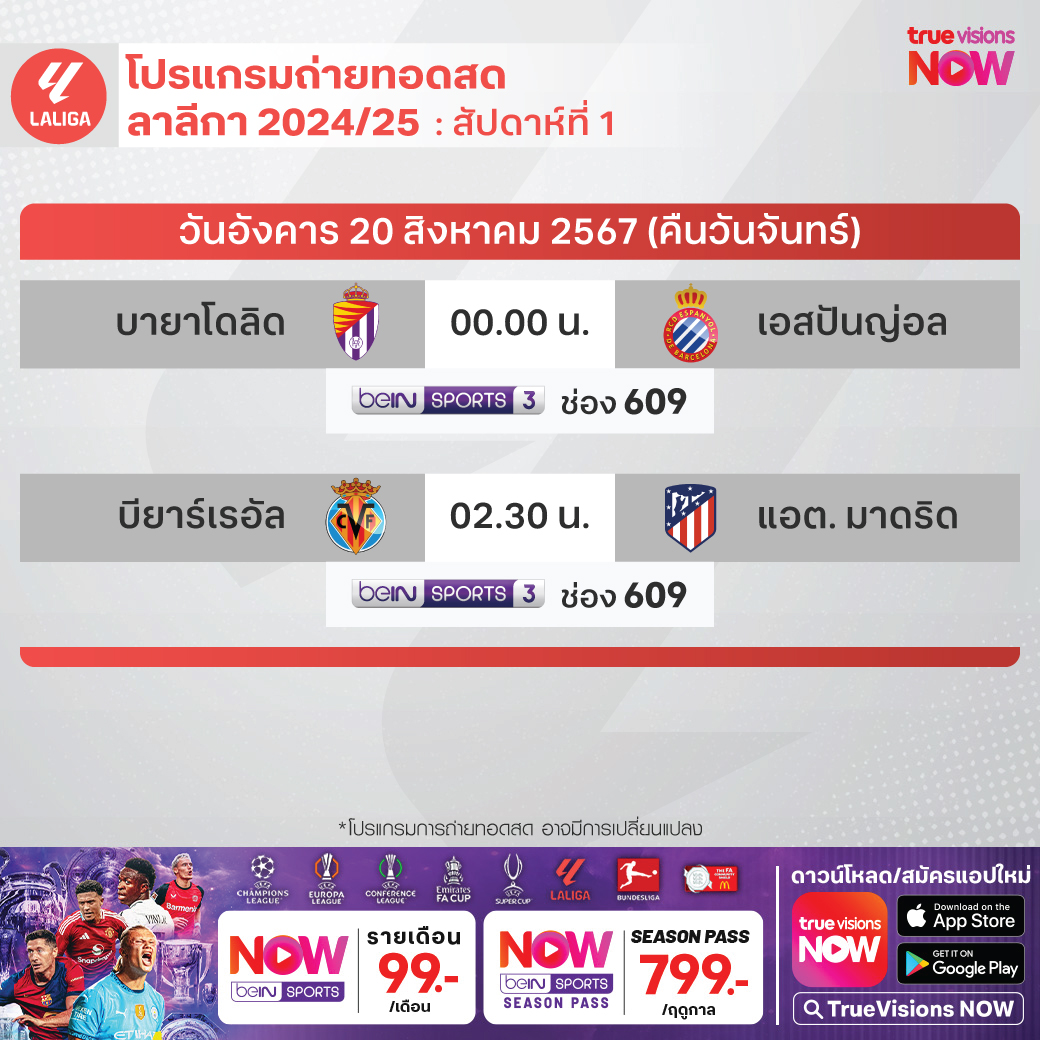 Valladolid vs Espanyol เวลา 00.00-02.00 ทางช่อง beIN 3 (609)