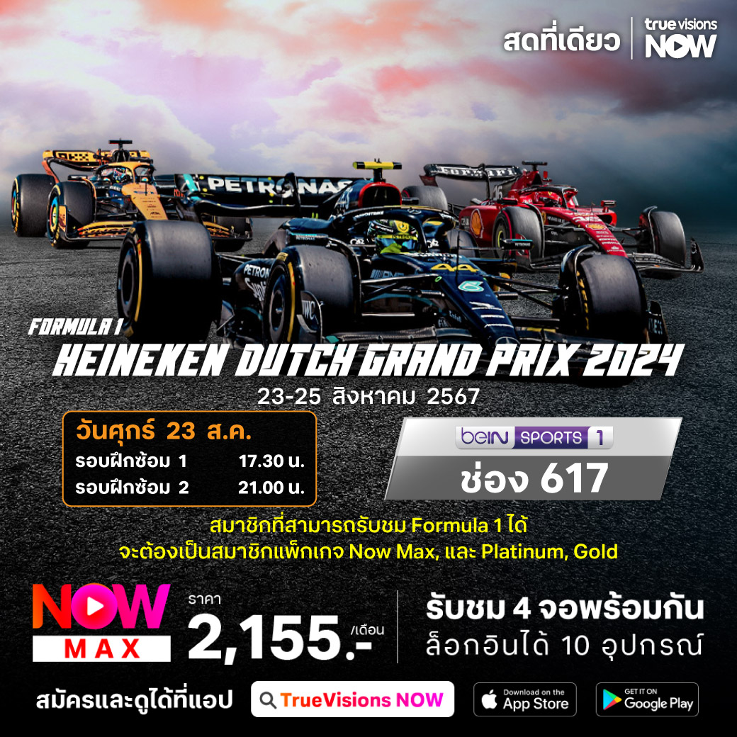 ศึกฟอร์มูล่า วัน สัปดาห์นี้พบกับรายการ ดัตช์ กรังด์ปรีซ์ กับความเร้าใจที่ไม่ลดดีกรีลงเลย โดยเฉพาะการขับเคี่ยวแย่งชิงตำแหน่ง แชมป์และอันดับบนโพเดียมของแชมป์เก่า เร้ด บูลล์ และ แม็กซ์ เวอร์สแท็ปเพ่น ที่เริ่มถูกกกดันและท้าทายอย่างหนักจากคู่แข่ง อย่างทีมเมอร์ซีเดซ, แม็คลาเรน และเฟอร์รารี่ สุดท้ายแล้วใครจะคว้าแชมป์ไปครอง ชมสด เอ็กซ์คลูซีฟ ที่เดียวที่ ทรูวิชั่นส์