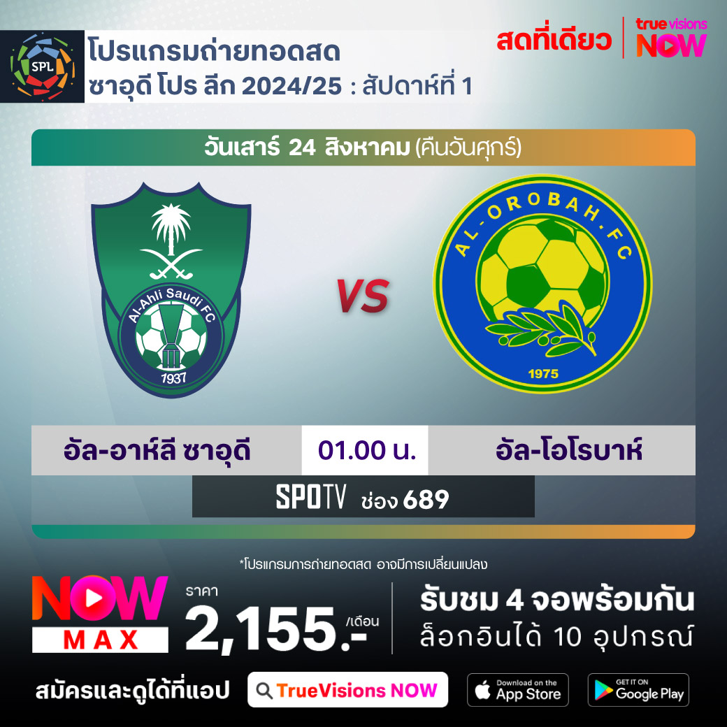 Al-Ahli Saudi vs Al-Orobah เวลา 01.00-03.00 ทางช่อง SPOTV (689)