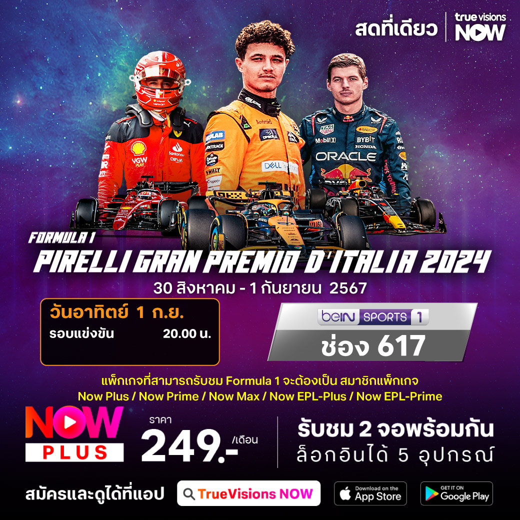 ศึกฟอร์มูล่า วัน สัปดาห์นี้ แฟนๆ จะได้สัมผัสประสบการณ์ระดับโลก จากรายการสุดยิ่งใหญ่และสุดคลาสสิกของวงการเอฟวัน นั่นคือ อิตาเลียน กรังด์ปรีซ์ ที่มอนซ่า จับตาดูการขับเคี่ยวเพื่อตำแหน่งแชมป์ของยอดทีมชั้นนำของวงการอย่าง เร้ด บูลล์, แม็คลาเรน, เมอร์เซเดส และ เฟอร์รารี่ ที่ไม่เคยยอมใครใน โฮม เรซ ของตัวเอง ชมสด เอ็กซ์คลูซีฟ ที่เดียวที่ ทรูวิชั่นส์