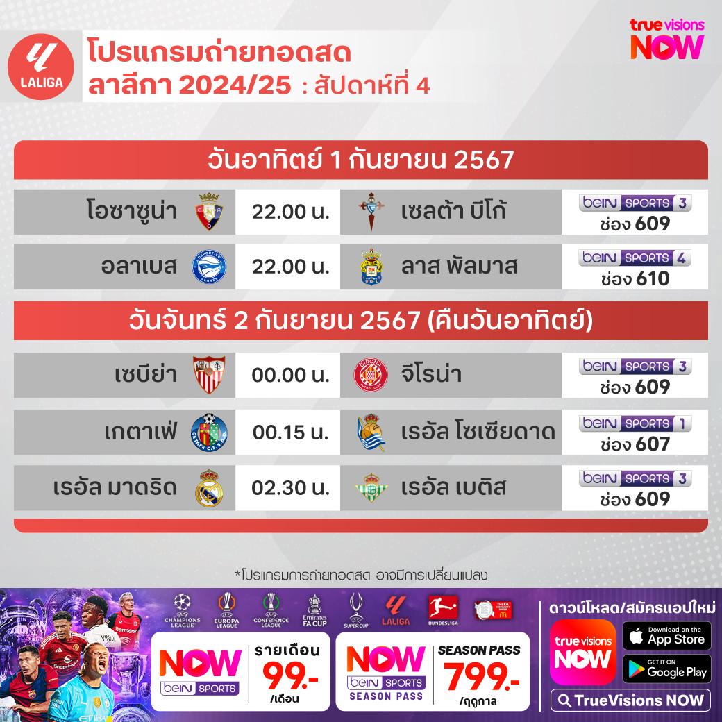 Sevilla vs Girona เวลา 00.00-02.00 ทางช่อง beIN 3 (609)