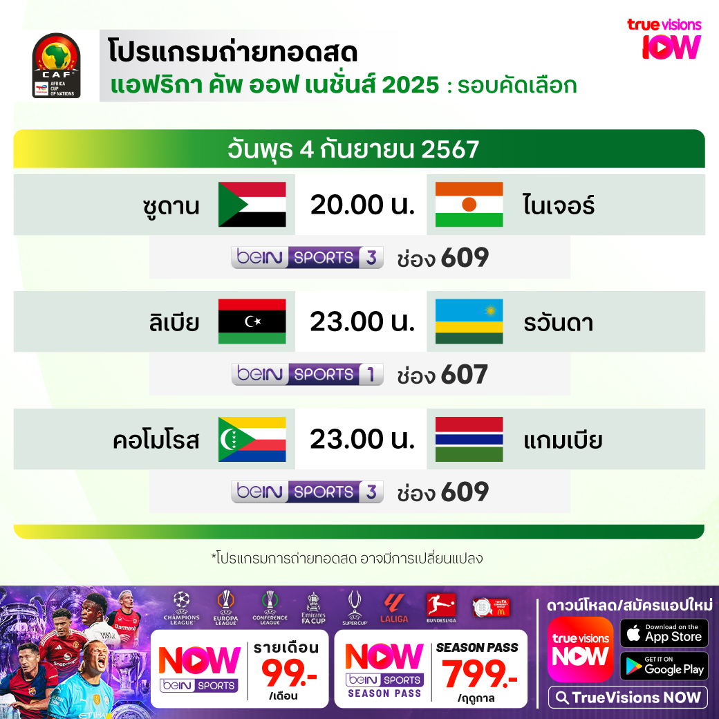 Libya vs Rwanda เวลา 23.00 น. ทางช่อง beIN Sports 1 (607)