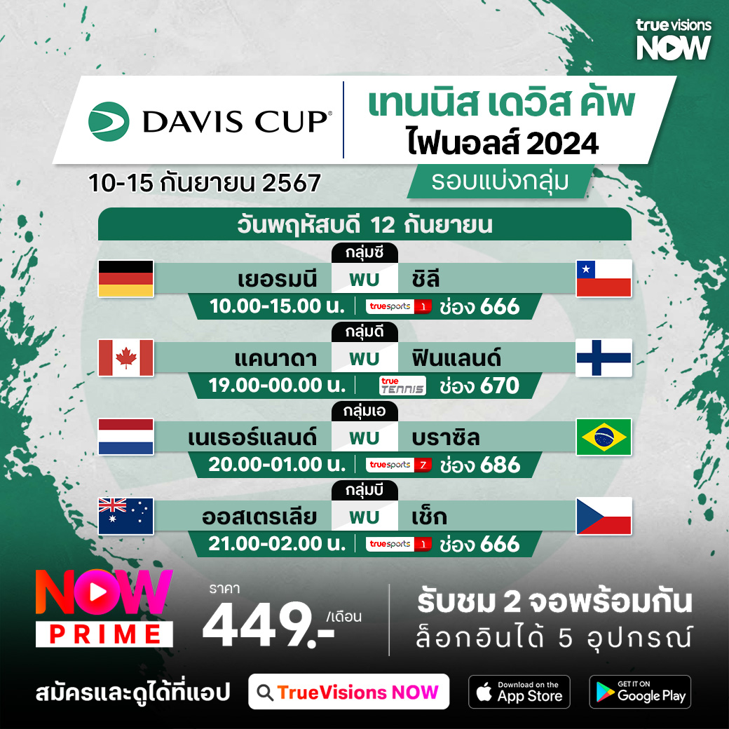 Canada vs Finland เวลา 19.00-00.00 ทางช่อง True Tennis (670)