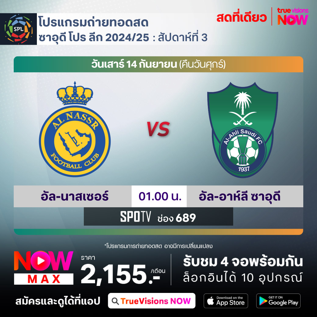 Al-Nassr vs Al-Ahli Saudi เวลา 01.00-03.00 ทางช่อง SPOTV (689)