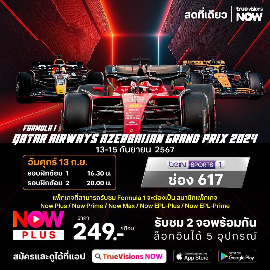 ศึกฟอร์มูล่า วัน สัปดาห์นี้ เป็นการดวลสนามที่ 17 กับรายการ อาเซอร์ไบจาน กรังด์ปรีซ์ ที่สังเวียน บากู ซิตี้ เซอร์กิต ความมันส์บนสตรีท เซอร์กิต ที่ท้าทายความสามารถนักแข่งทุกทีม ในกรุงบากู ประเทศอาเซอร์ไบจาน ใครจะคว้าคะแนนสะสมและอันดับสูงสุดบนโพเดี้ยม ชมสด เอ็กซ์คลูซีฟ ครบทุกช่วง ที่เดียวที่ ทรูวิชั่นส์