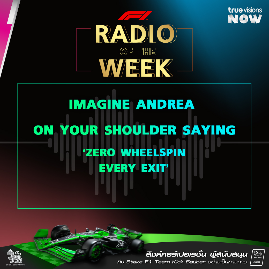 ก่อนที่ นอร์ริส จะแซงหน้า เวอร์สเตปเปน มีเสียงวิทยุอันแสนน่ารักจากทีมงานบอกว่า “จินตนาการภาพ อันเดรีย (สเตลล่า หัวหน้าทีม) ยืนเกาะไหลนาย แล้วพูดว่า อย่าให้รถส่ายทุกครั้งที่ออกโค้ง” ซึ่งเป็นคำเตือนที่ทั้งน่ารักน่าชัง และอาจจะน่าสยดสยองเล็กน้อยหากความผิดพลาดเกิดขึ้น แต่ก็เป็นการเรียกสติว่า ถ้าไม่แซง แซงไม่ได้ ก็ขอให้แข่งจนจบ และในที่สุด นอร์ริส ก็ทำได้ดีกว่าที่จินตนาการ โดย สเตลล่า ไม่ต้องมายืนตบบ่าด้วย