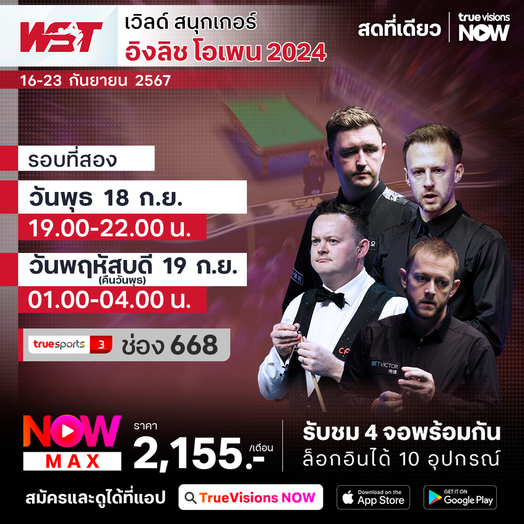 สนุกเกอร์เก็บคะแนนสะสมโลก เวิลด์ สนุกเกอร์ ทัวร์ ฤดูกาล 2024/25 สัปดาห์นี้กลับไปแข่งขันในประเทศอังกฤษ กับรายการ อิงลิช โอเพ่น รายการแรกของ โฮม เนชั่นส์ ซีรี่ส์ ที่ เบรนท์วู้ด, เอสเซ็กส์ มือ 1 ของโลกและแชมป์รายการนี้ปีล่าสุดอย่าง จั๊ดด์ ทรัมป์ นำซูเปอร์สตาร์ของวงการสอยคิวร่วมแข่งขันกันคับคั่ง ร่วมลุ้นกันว่าแชมป์ปีนี้จะเป็นใคร ชมสด ครบทุกรอบ แบบเอ็กซ์คลูซีฟ ที่เดียวที่ ทรูวิชั่นส์