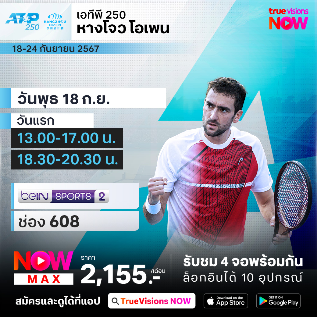 เทนนิสชาย เอทีพี ทัวร์ สัปดาห์แรกที่แข่งขันทางฝั่งเอเชีย ในรายการ หางโจว โอเพ่น ที่เมืองหางโจว ประเทศจีน และเป็นครั้งแรกที่เมืองนี้ได้รับหน้าที่จัดการแข่งขันเทนนิสระดับ เอทีพี ทัวร์ ร่วมลุ้นกันว่าใครจะคว้าแชมป์รายการนี้เป็นครั้งแรกไปครอง ชมสด ครบทุกรอบ ที่ ทรูวิชั่น