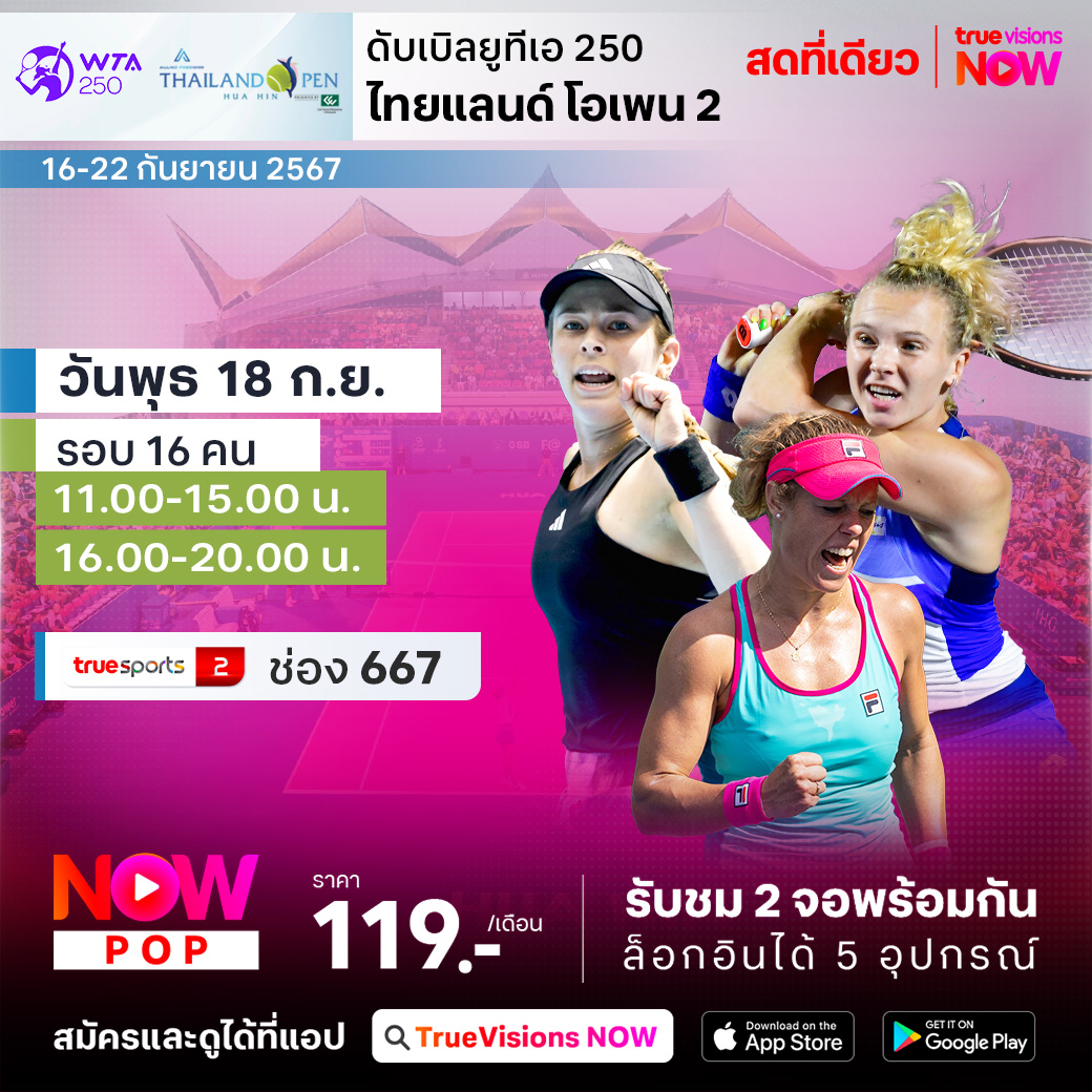 รอบ 16 คน เวลา 10.00 - 18.00 ทางช่อง True Tennis (670)