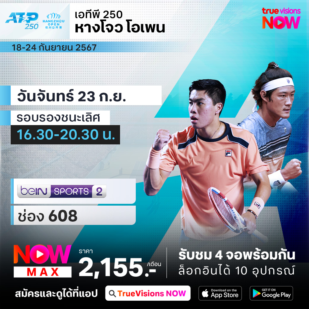 เทนนิสชาย เอทีพี ทัวร์ สัปดาห์แรกที่แข่งขันทางฝั่งเอเชีย ในรายการ หางโจว โอเพ่น ที่เมืองหางโจว ประเทศจีน และเป็นครั้งแรกที่เมืองนี้ได้รับหน้าที่จัดการแข่งขันเทนนิสระดับ เอทีพี ทัวร์ ร่วมลุ้นกันว่าใครจะคว้าแชมป์รายการนี้เป็นครั้งแรกไปครอง ชมสด ครบทุกรอบ ที่ ทรูวิชั่นส์
