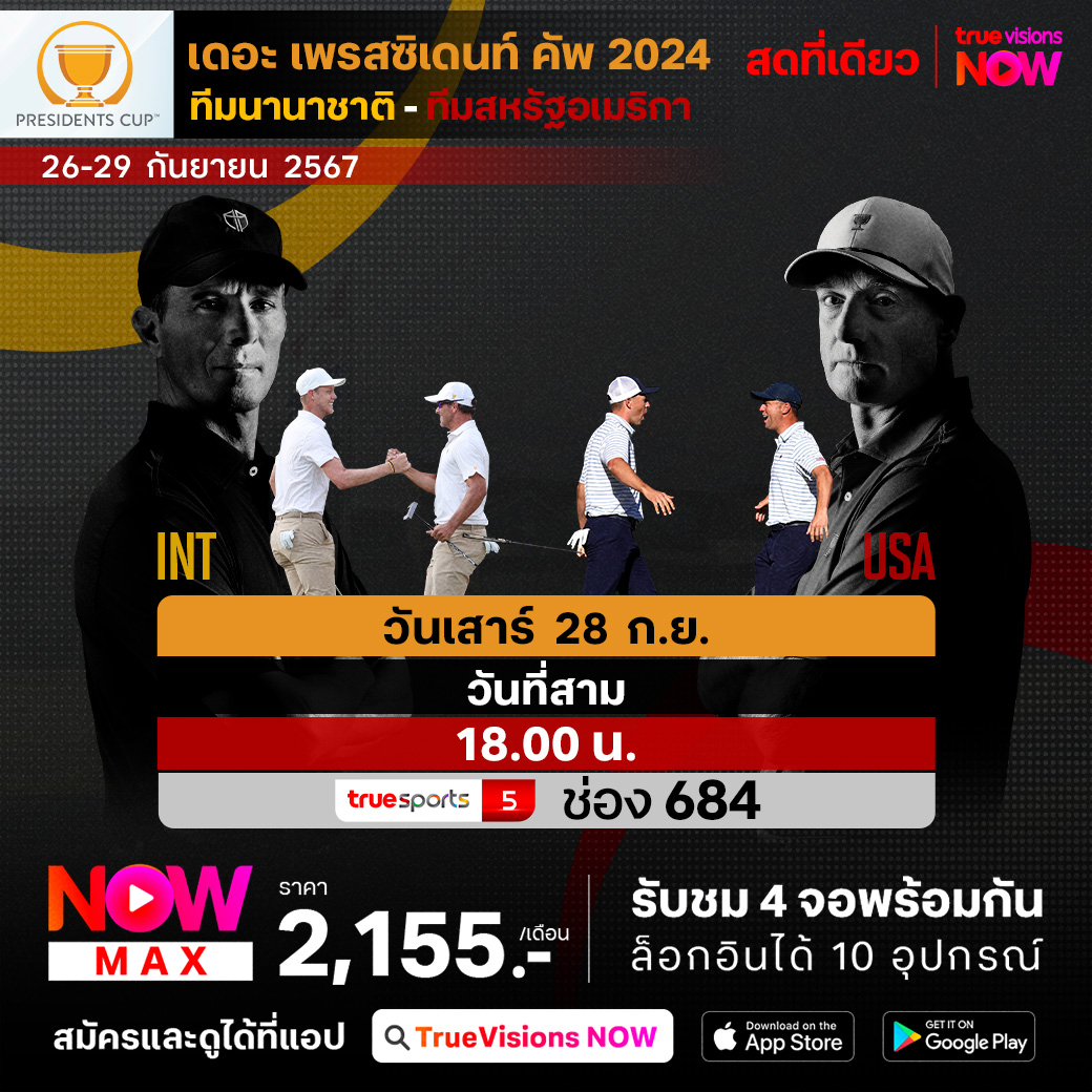 ศึกแห่งศักดิ์ศรี กอล์ฟประเพณีประเภททีมที่สุดยิ่งใหญ่ เดอะ เพรสซิเดนท์ คัพ 2024 ที่ทีมรวมดารานานาชาติ ในฐานะเจ้าบ้าน เปิดหน้าชน ทีมรวมดาราสหรัฐอเมริกา เพื่อตำแหน่งแชมป์ อะไรก็เกิดขึ้นได้ เพราะขุนพลทั้ง 2 ทีม พร้อมที่จะแย่งคะแนนทุกแมตช์ เพื่อไปให้ถึงเป้าหมาย ชมสด เอ็กซ์คลูซีฟ ครบทุกรอบ จากสนาม รอยัล ออฟ มอนทรีออล กอล์ฟ คลับ ประเทศแคนาดา ที่เดียวที่ ทรูวิชั่นส์