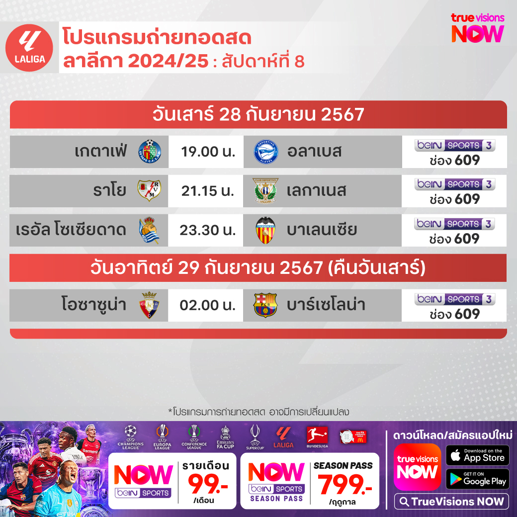 Osasuna vs Barcelona เวลา 02.00-04.00 ทางช่อง beIN 3 (609)