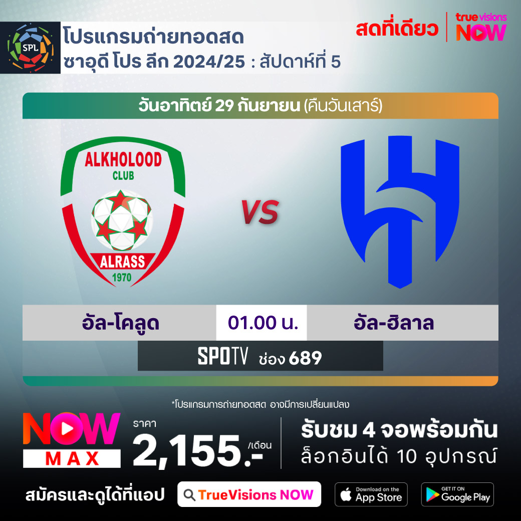 Al-Kholood vs Al-Hilal เวลา 01.00-03.00 ทางช่อง SPOTV (689)