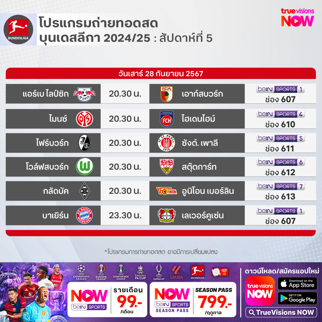 Bayern vs Leverkusen เวลา 23.30-01.30 ทางช่อง beIN 1 (607)