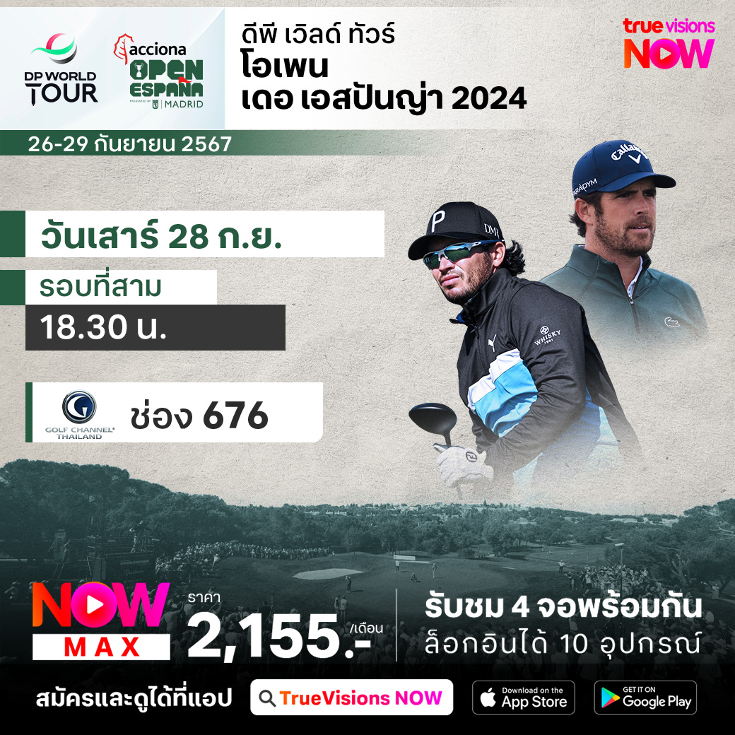 กอล์ฟ ดีพี เวิลด์ ทัวร์ สัปดาห์นี้ไปสัมผัสบรรยากาศของการแข่งขันที่แดนกระทิงดุ กับรายการ โอเพ่น เด เอสปันญ่า ที่สนาม คลุบ เด กัมโป้ บีย่า เด มาดริด ในกรุงมาดริด ประเทศสเปน ชิงเงินรางวัล 3,250,000 เหรียญสหรัฐฯ โปรชื่อดังของโลกมาร่วมแข่งขันกันอย่างคึกคัก ชมสด ครบทุกรอบ ที่ ทรูวิชั่นส์