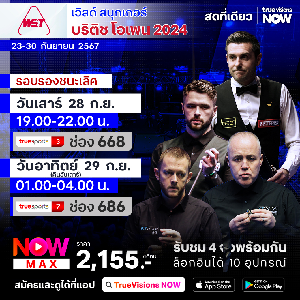 สนุกเกอร์เก็บคะแนนสะสมโลก เวิลด์ สนุกเกอร์ ทัวร์ ฤดูกาล 2024/25 สัปดาห์นี้ยังปักหลักกันในประเทศอังกฤษเป็นสัปดาห์ที่ 2 กับรายการ บริติช โอเพ่น 2024 ที่สุดยอดฝีมือและซูเปอร์สตาร์ของโลก มาร่วมการแข่งขันกันอย่างคับคั่ง ใครจะคว้าโทรฟี่แชมป์รายการนี้ไปครอง ชมสด เอ็กซ์คลูซีฟ ครบทุกรอบ ที่เดียวที่ ทรูวิชั่นส์