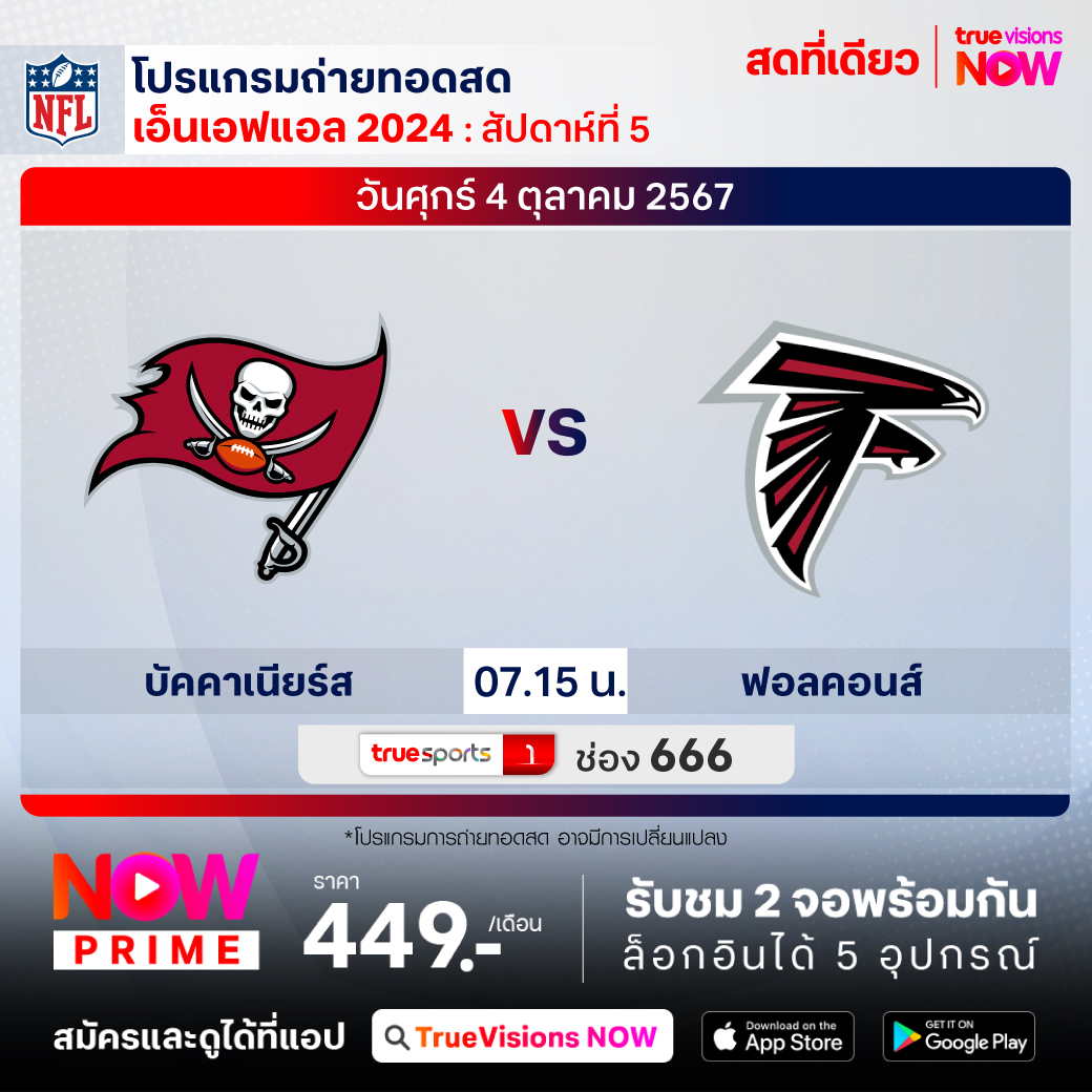 วันศุกร์ 4 ต.ค. Buccaneers Vs Falcons เวลา 07.15 ทางช่อง TS 1 (666)