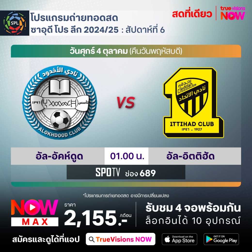 Al-Akhdood vs Al-Ittihad เวลา 01.00-03.00 ทางช่อง SPOTV (689)