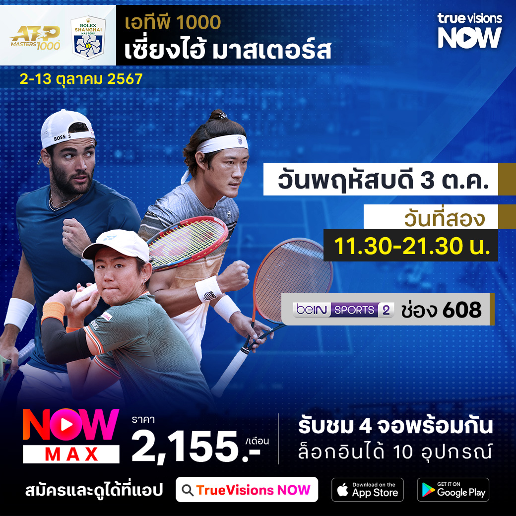 ติดตามชมเทนนิสชายรายการใหญ่ที่สุดในทวีปเอเชีย เซี่ยงไฮ้ มาสเตอร์ส ถ่ายทอดสดจากมหานครเซี่ยงไฮ้ ประเทศสาธารณรัฐประชาชนจีน รวมผู้เล่นชื่อดังระดับโลกเข้าร่วมการแข่งขัน ร่วมลุ้นว่าใครจะคว้าแชมป์รายการใหญ่ไปครองได้สำเร็จ ชมสด ครบทุกรอบ ที่ ทรูวิชั่นส์