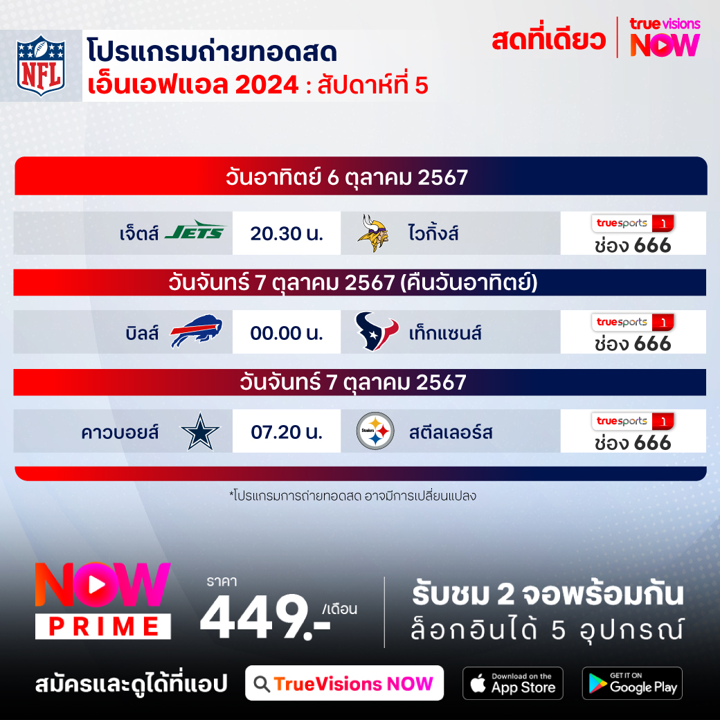 วันอาทิตย์ 6 ต.ค. Bills Vs Texans เวลา 00.00 ทางช่อง TS 1 (666)