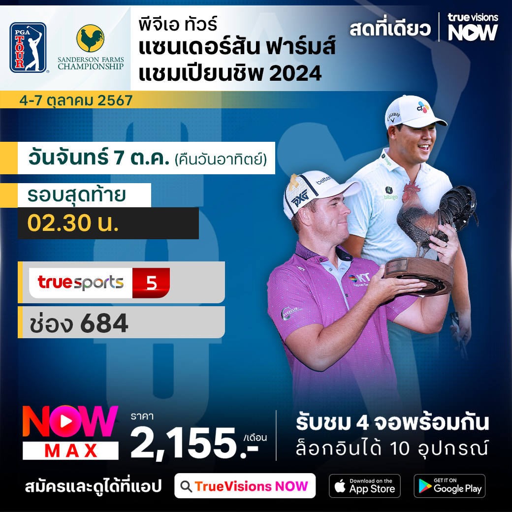 กอล์ฟ พีจีเอ ทัวร์ รายการ แซนเดอร์สัน ฟาร์มส์ แชมเปี้ยนชิพ 2024 จากสนาม คันทรี่ คลับ ออฟ แจ็คสัน ที่เมืองแจ็คสัน รัฐมิสซูรี่ ประเทศสหรัฐอเมริกา ชิงเงินรางวัลรวม 7,600,000 เหรียญสหรัฐฯ ร่วมลุ้นกันว่าใครรจะคว้าแชมป์ปีนี้ไปครอง ชมสด เอ็กซ์คลูซีฟ ครบทุกรอบ ที่เดียวที่ ทรูวิชั่นส์