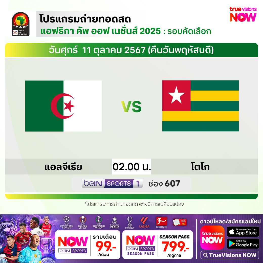 Algeria vs Togo เวลา 02.00-04.00 ทางช่อง beIN 1 (607)