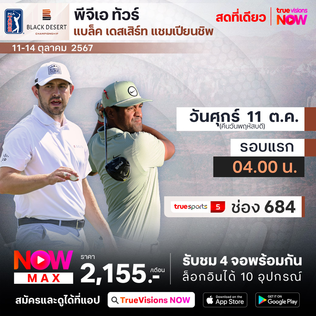 ไปแข่งขันในฤดูกาลหน้า สัปดาห์นี้ พาแฟนๆ กอล์ฟ ไปสัมผัสการแข่งขันรายการ แบล็ค เดสเสิร์ท แชมเปี้ยนชิพ ชิงเงินรางวัลรวมสูงถึง 7,500,000 เหรียญสหรัฐฯ ร่วมลุ้นและเชียร์กันว่าใครจะผงาดเป็นแชมป์ในปีนี้ ชมสด เอ็กซ์คลูซีฟ ที่เดียวที่ ทรูวิชั่นส์