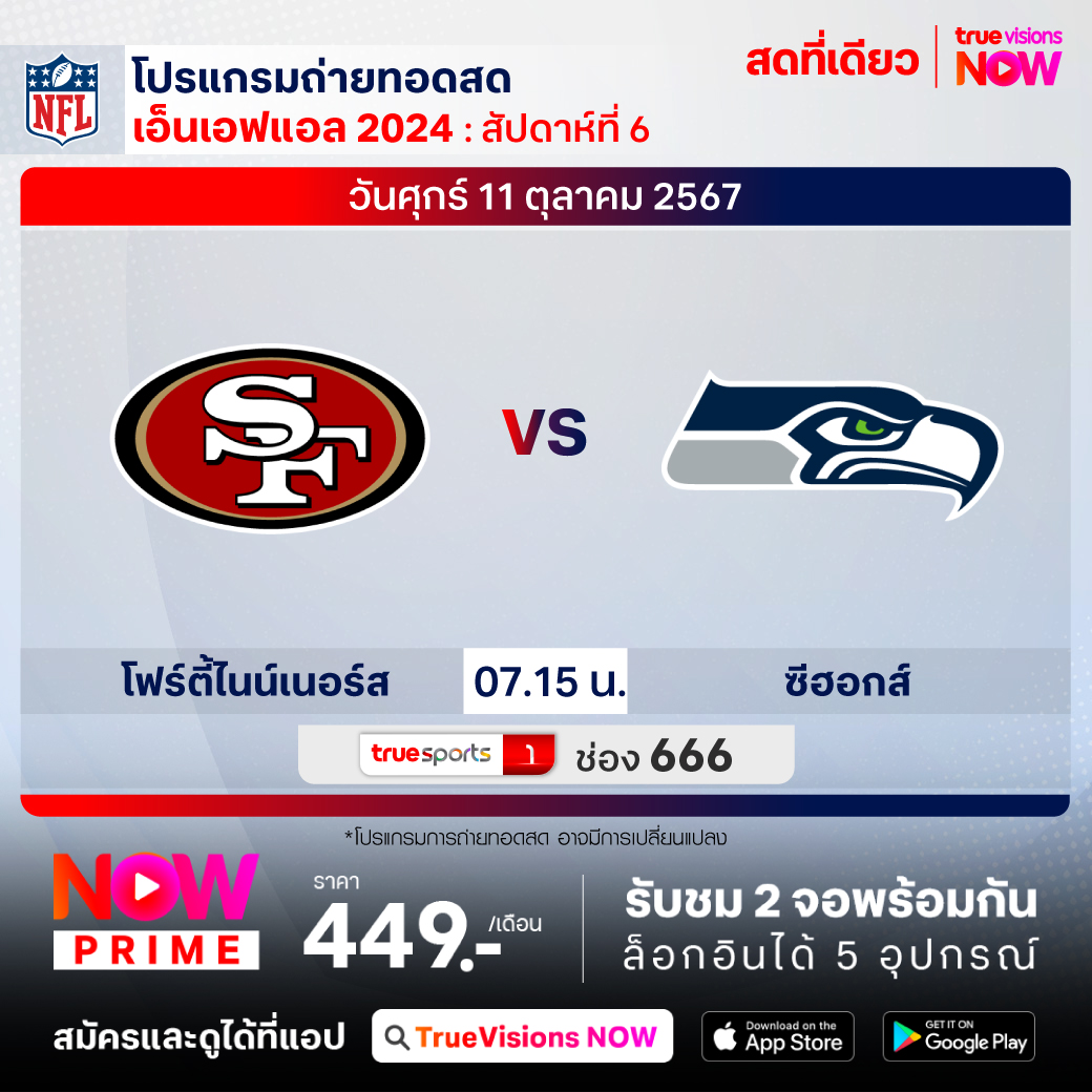 วันศุกร์ 11 ต.ค. 49ers Vs Seahawks เวลา 07.15 ทางช่อง TS 1 (666)