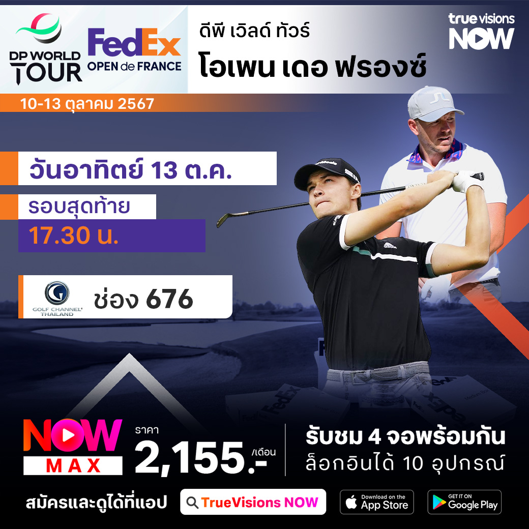 กอล์ฟ ดีพี เวิลด์ ทัวร์ ฤดูกาล 2024 ที่กำลังเดินทางเข้าสู่ช่วงท้ายๆ ของฤดูกาลแล้ว สัปดาห์นี้ โปรชั้นนำของทัวร์ ไปรวมตัวกันที่แดนน้ำหอม ฝรั่งเศส กับการแข่งขันรายการ โอเพ่น เดอ ฟร้องซ์ ที่สังเวียน เลอ กอล์ฟ เนชั่นแนล กรุงปารีส โดยมีเงินรางวัลรวมให้ชิงกันมากถึง 3,250,000 เหรียญสหรัฐฯ ลุ้นกันว่าแชมป์ปีนี้จะตกเป็นของใคร ชมสด ครบทุกรอบ ที่ทรูวิชั่นส์