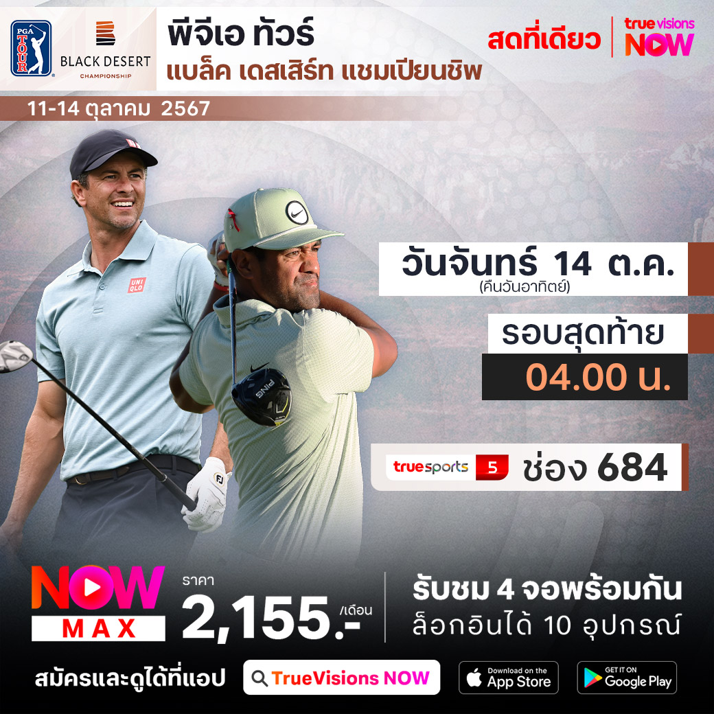 ไปแข่งขันในฤดูกาลหน้า สัปดาห์นี้ พาแฟนๆ กอล์ฟ ไปสัมผัสการแข่งขันรายการ แบล็ค เดสเสิร์ท แชมเปี้ยนชิพ ชิงเงินรางวัลรวมสูงถึง 7,500,000 เหรียญสหรัฐฯ ร่วมลุ้นและเชียร์กันว่าใครจะผงาดเป็นแชมป์ในปีนี้ ชมสด เอ็กซ์คลูซีฟ ที่เดียวที่ ทรูวิชั่นส์