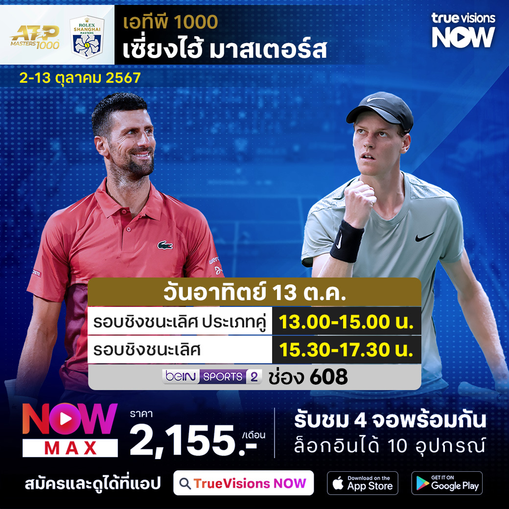 รอบชิงชนะเลิศ เวลา 16.00-18.00 ทางช่อง True Tennis (670)