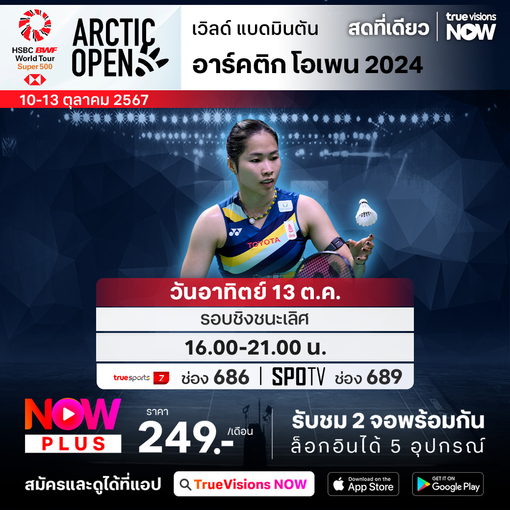 แฟนแบดมินตันพลาดไม่ได้ กับการแข่งขัน เวิลด์ แบดมินตัน รายการเก็บคะแนนสะสมโลกระดับ เวิลด์ ทัวร์ ซูเปอร์ 500 ในรายการ อาร์คติก โอเพ่น ที่ ประเทศฟินแลนด์ ร่วมเชียร์ทีมแบดมินตันไทย และตื่นตาตื่นใจกับลีลาและเทคนิคของมือระดับโลก ที่มีเป้าหมายคว้าชัยชนะและแย่งกันเป็นแชมป์ ชมสด เอ็กซ์คลูซีฟ ที่เดียวที่ ทรูวิชั่นส์