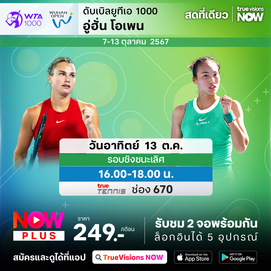 ติดตามชมเทนนิสหญิงรายการใหญ่ ที่กลับมาจัดการแข่งขันเป็นครั้งแรกนับตั้งแต่ปี 2019 ในรายการ อู่ฮั่น โอเพ่น ถ่ายทอดสดจากเมืองอู่ฮั่น ประเทศสาธารณรัฐประชาชนจีน ร่วมลุ้นกันว่าใครจะคว้าแชมป์ไปครองได้สำเร็จ ชมสด ครบทุกรอบ ที่ ทรูวิชั่นส์