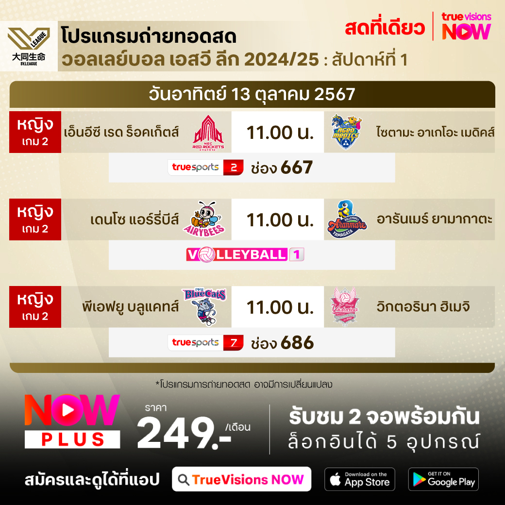 เอ็นอีซี เรด ร็อคเก็ตส์ พบ ไซตามะ อาเกโอะ เมดิคส์ เวลา 11.00 - 13.30 ทางช่อง TS 2 (667)