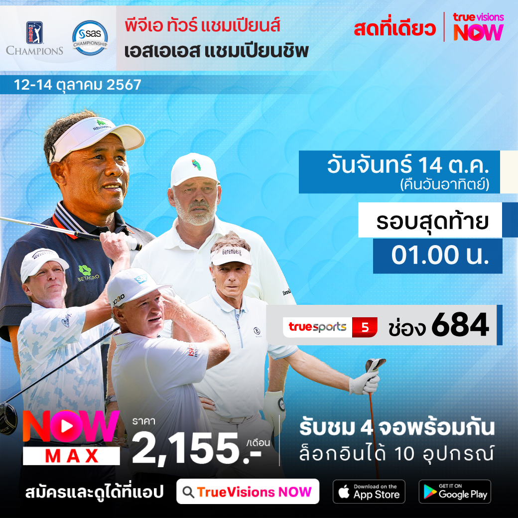 กอล์ฟ พีจีเอ ทัวร์ แชมเปี้ยนส์ สัปดาห์นี้ พบกับรายการ เอสเอเอส แชมเปี้ยนชิพ ที่สนาม เพรสตันวู้ด คันทรี่ คลับ ในเมืองแคร์รี่ รัฐนอร์ธ แคโรไลน่า ชิงเงินรางวัล 2,100,000 เหรียญสหรัฐฯ ร่วมเชียร์โปรกอล์ฟรุ่นเก๋าดวลวงสวิง เพื่อคว้าแชมป์ในรายการนี้ ชมสด เอ็กซ์คลูซีฟ ครบทุกรอบ ที่เดียวที่ ทรูวิชั่นส์