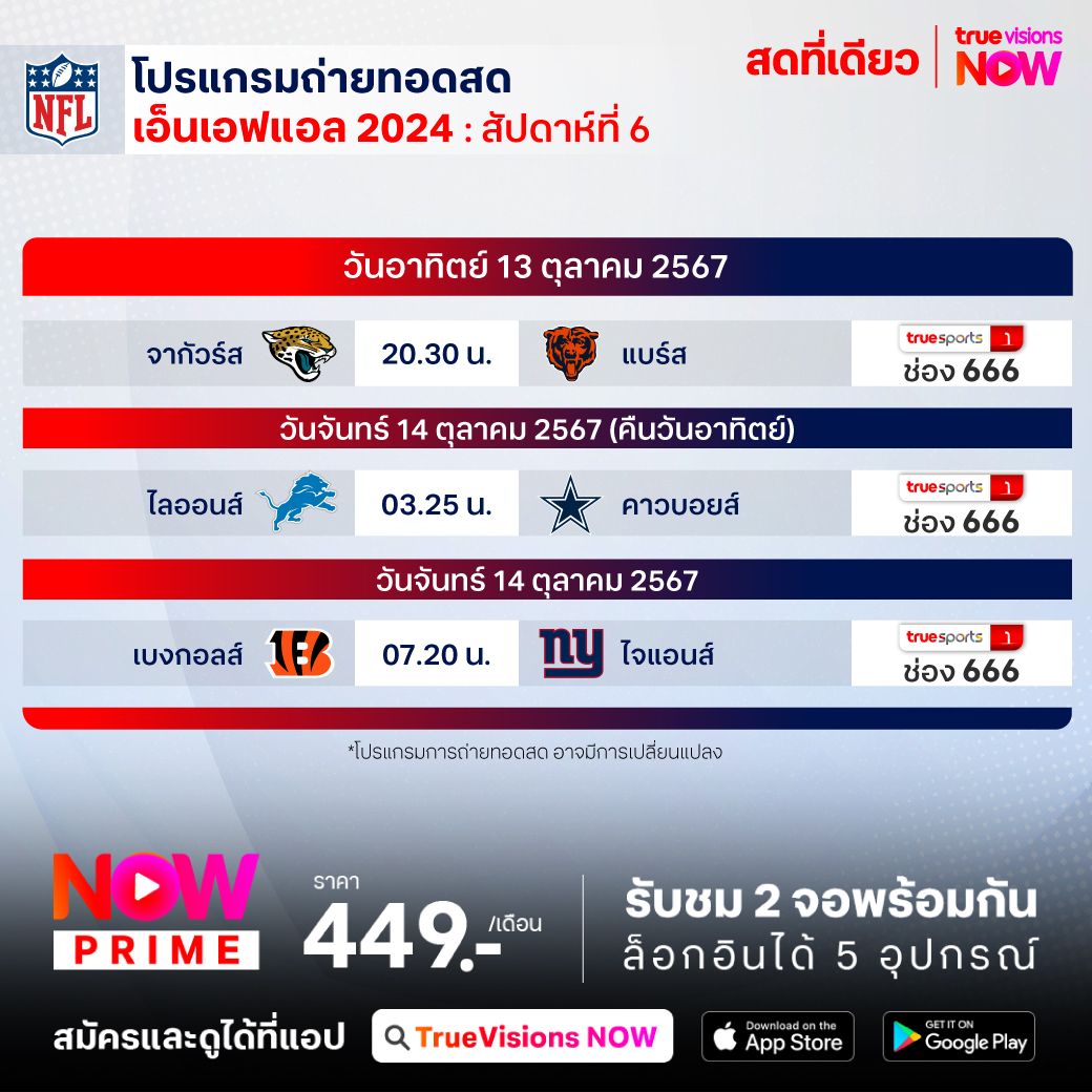 วันจันทร์ 14 ต.ค. Lions Vs Cowboys เวลา 03.25 ทางช่อง TS 1 (666)