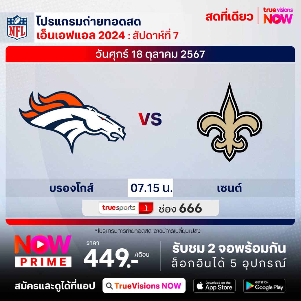 วันศุกร์ 18 ต.ค. Broncos Vs Saints เวลา 07.15 ทางช่อง TS 1 (666)