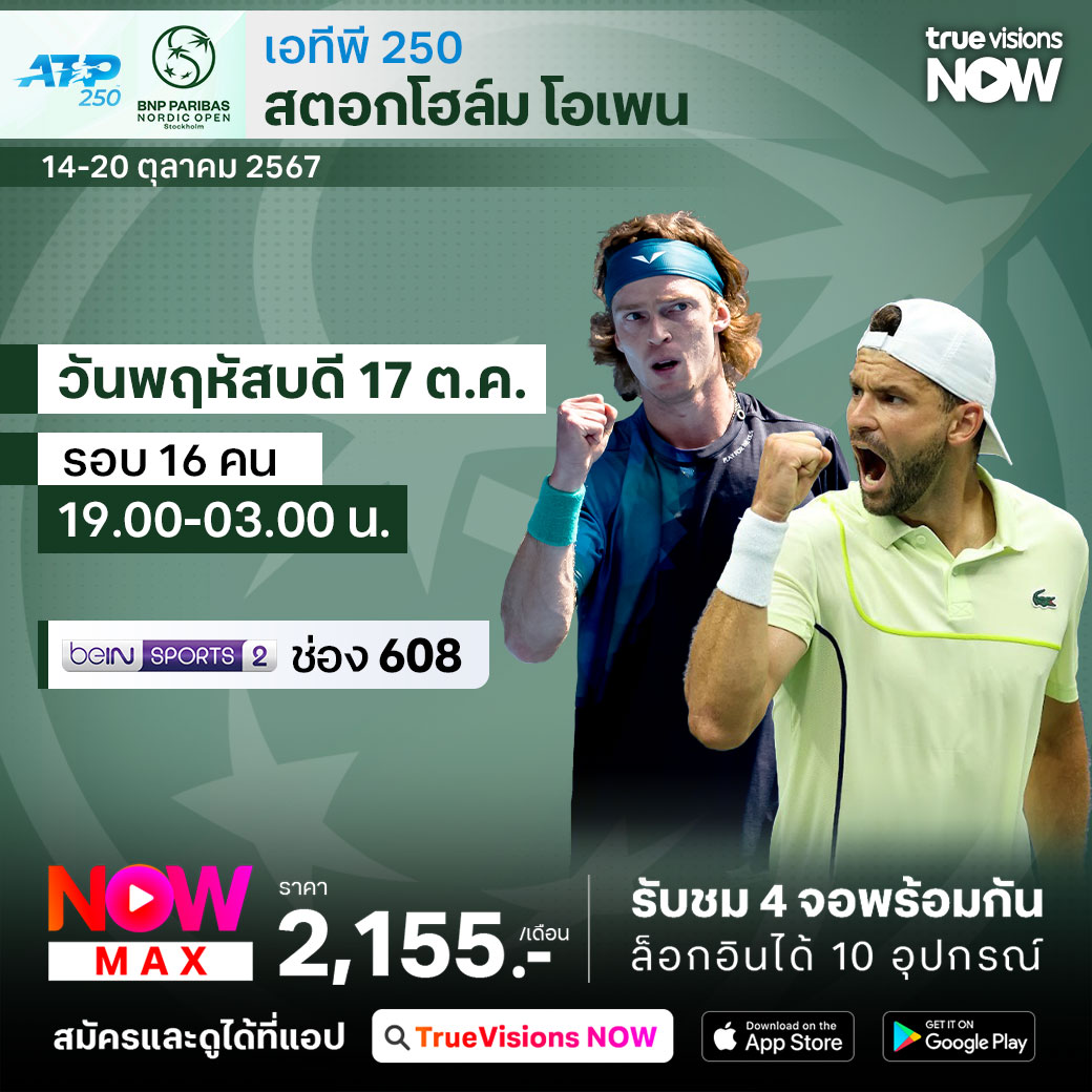 เทนนิสชาย เอทีพี ทัวร์ เริ่มเข้าสู่ช่วงท้ายของฤดูกาลสำหรับการแข่งขันฮาร์ทคอร์ทในร่ม สัปดาห์นี้พบกับรายการ สตอกโฮล์ม โอเพ่น รายการแรกที่กลับมาแข่งขันบนทวีปยุโรป ที่กรุงสตอกโฮล์ม ประเทศสวีเดน ร่วมลุ้นกันว่าใครจะทำผลงานได้ดี และนักเทนนิสคนไหนจะคว้าแชมป์ไปครอง ชมสด ครบทุกรอบ ที่ ทรูวิชั่นส์